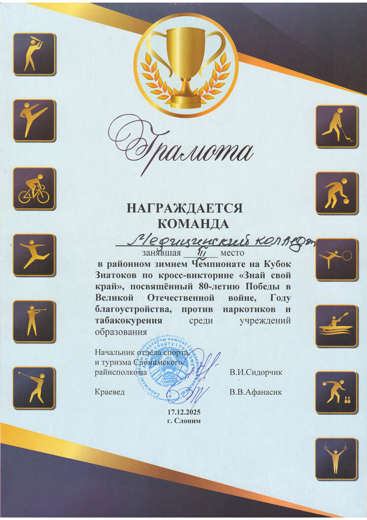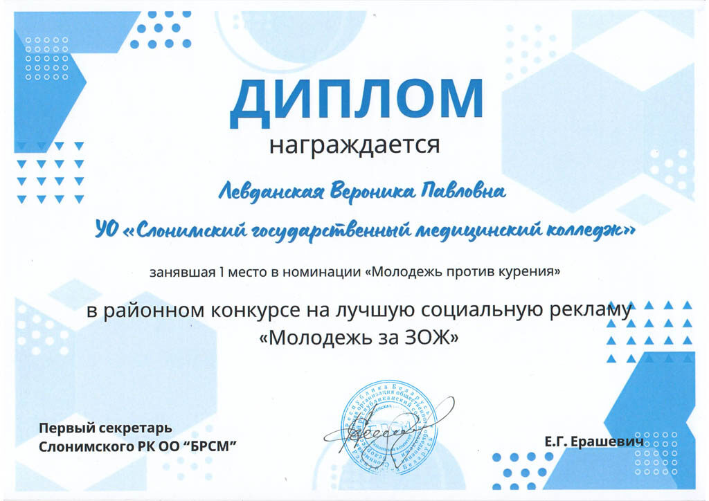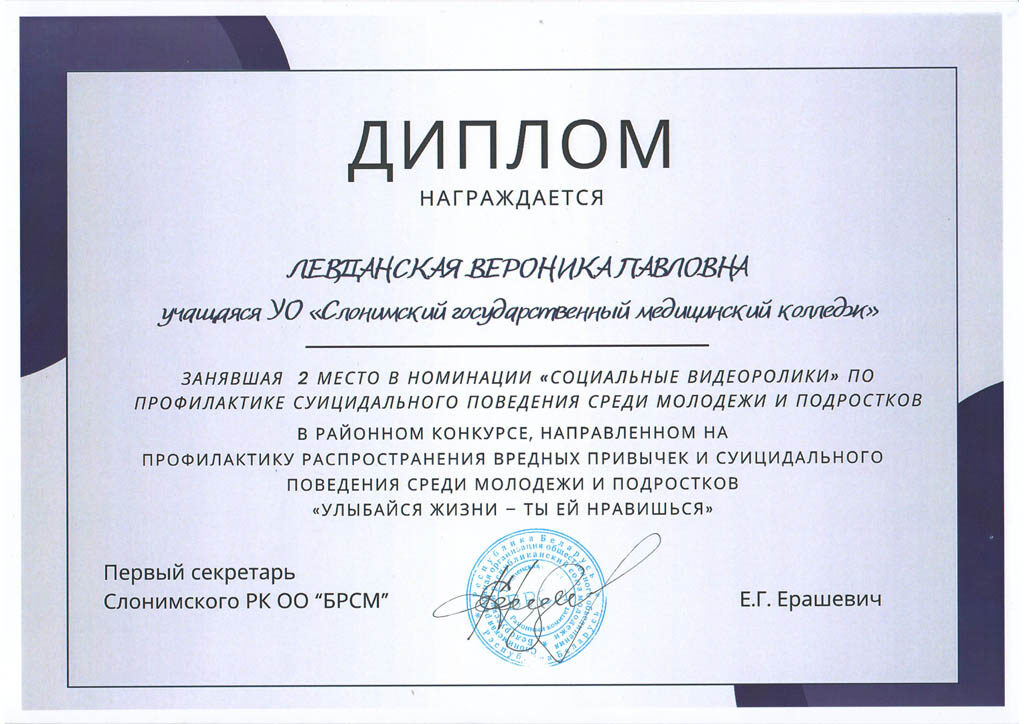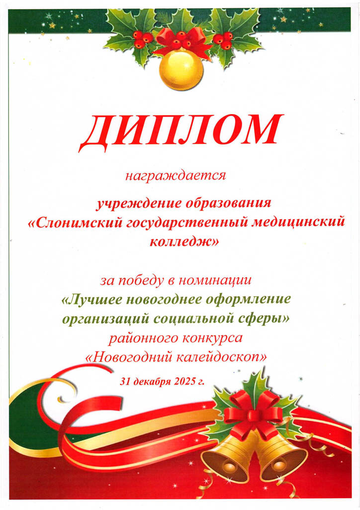 Художественная самодеятельность УО “Слонимское государственное медицинское училище” за участие в районном смотре-конкурсе художественной самодеятельности в номинации “Ведущие”