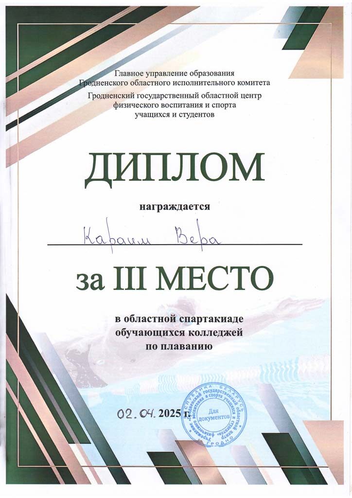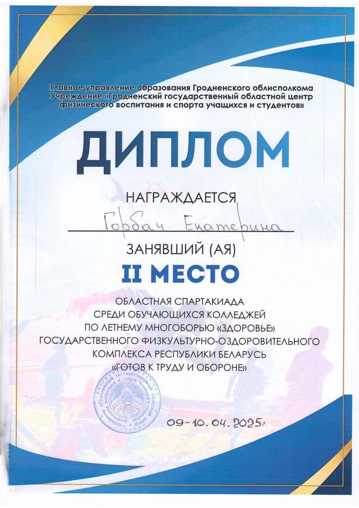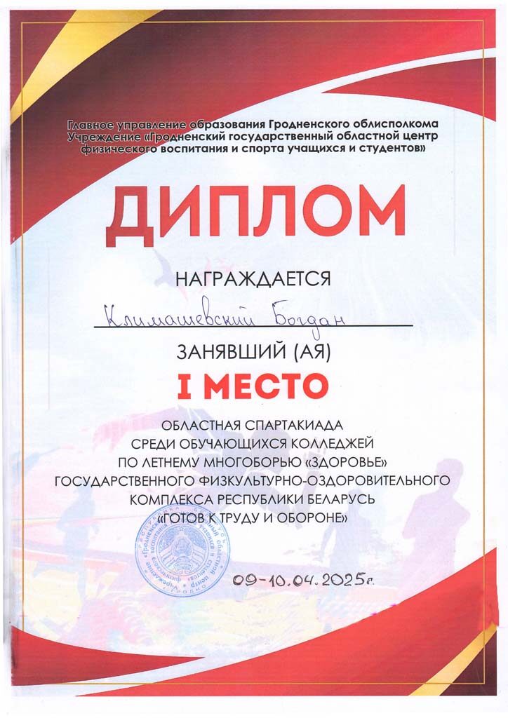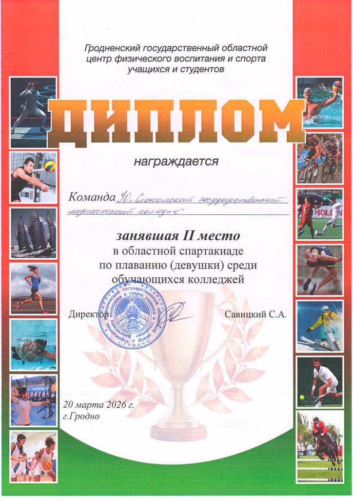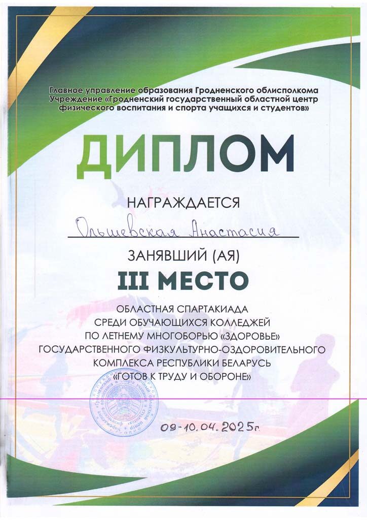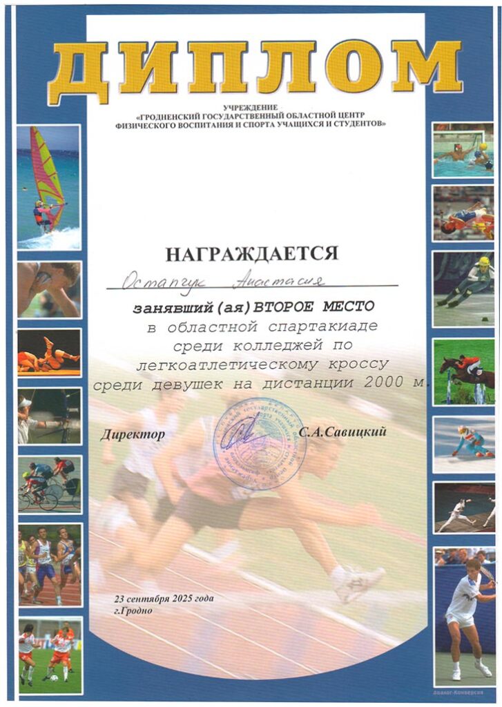 За отличную подготовку учащихся и достижение высоких результатов в 1 Спартакиаде Гродненской области среди учащихся учреждений обеспечивающих получения среднего специального образования, посвящённой Году здоровья