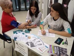 Учащиеся колледжа раздавали буклеты о профилактике заболеваний сердца, правилах измерения артериального давления, ошибках при его измерении.