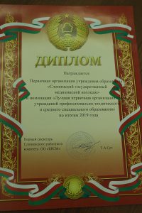 Первичная организация учреждения образования «Слонимский государственный медицинский колледж» по итогам 2019 года признана ЛУЧШЕЙ первичной организацией ОО «БРСМ» среди учреждений профессионально-технического и среднего специального образования района.