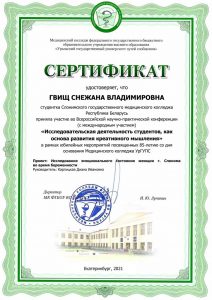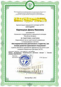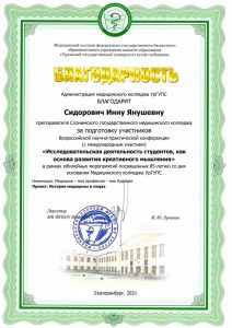 Учащиеся Слонимского медицинского колледжа приняли участие во Всероссийской студенческой научно-практической конференции (с международным участием)