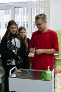 16 декабря в Слонимском государственном медицинском колледже состоялось профориентационное мероприятие для учащихся ГУО «СШ № 10 г. Слонима» и ГУО «СШ № 2 г. Слонима». Ребята посмотрели профориентационную программу, подготовленную педагогами дополнительного образования с учащимися первого курса колледжа, познакомились с лабораторно-практическим комплексом в учебном корпусе № 2, где посетили симуляционные лаборатории по педиатрии, терапии, акушерству и гинекологии. Экскурсию для школьников проводила преподаватель колледжа Зайцева А.И., заведующая сестринским отделением Кисляк О.В., заведующая лабораторно-практическим комплексом Базан Ю.Н. вместе с учащимися выпускных групп. После экскурсии было очень приятно слышать положительные отзывы, а многие ребята выразили желание вернуться снова, но уже в качестве абитуриентов! Будем ждать!