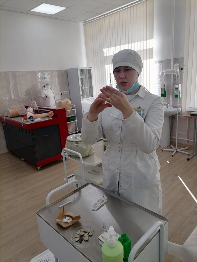 Учащиеся 4-го курса отделения «Лечебное дело» и учащиеся 3-го курса «Сестринское дело» соревновались, кто лучше выполнит практические навыки на симуляционном оборудовании. При оценивании практических навыков учитывались правильность и последовательность выполнения, умение общаться с пациентом, соблюдение санитарно-эпидемиологических требований.