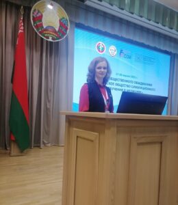 Базан Юлия Николаевна, председатель Гродненского отделения БОСОМ, выступила с докладом «Создание и использование симуляционных сценариев для отработки навыков оказания медицинской помощи».
