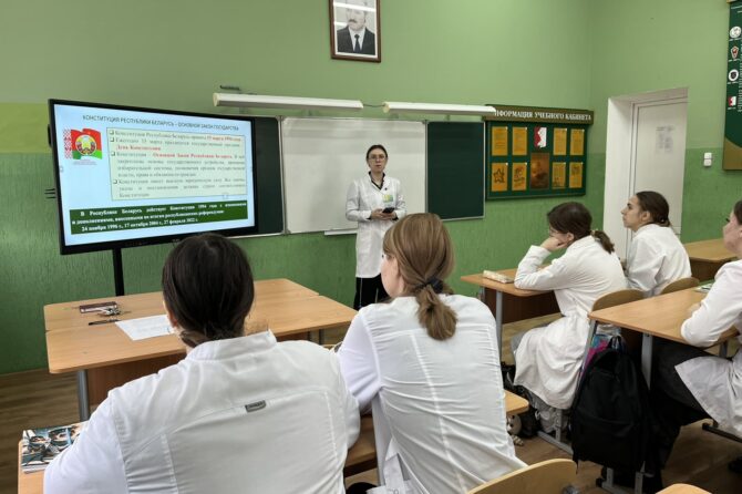 В рамках единых уроков учащиеся выступили с докладами, посвященными истории и значению Конституции, а также приняли участие в тематической викторине. Были организованы просмотры документальных фильмов, посвященных созданию Конституции Республики Беларусь с последующим обсуждением. Учащиеся не просто получили информацию, но и смогли задать вопросы педагогам, углубляя свои знания об историческом контексте принятия главного документа страны.
