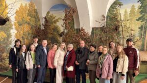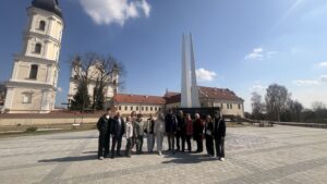 Поездка началась с посещения коллегиума иезуитов, где находится «Музей Белорусского Полесья». Затем во время пешеходной экскурсии сотрудники колледжа посетили ансамбль монастыря францисканцев, дворец Бутримовича, Свято-Варваринский собор, костел Карла Баромея, здание старейшей гимназии Полесья и другие знаковые места Пинска.