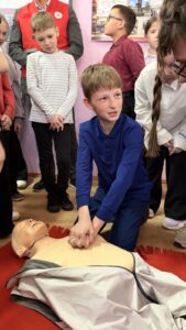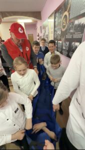 8 апреля 2026 года преподаватели и учащиеся УО «Слонимский государственный медицинский колледж», являющиеся волонтёрами Белорусского Красного Креста, приняли участие в Межгосударственной акции «Неделя здоровья и прав человека в Содружестве Независимых Государств» в ГУО «Средняя школа №10 г. Барановичи». Главная тема – основы оказания первой помощи. Учащиеся 5 классов не просто были слушателями, а стали активными участниками. Ребята научились правильно оценивать обстановку, проверять сознание и дыхание пострадавшего, оказывать первую помощь, грамотно вызывать скорую помощь. Самая зрелищная и сложная часть: выполнение сердечно-легочной реанимации (СЛР) на специальном манекене-тренажере. Многие впервые почувствовали, сколько сил нужно приложить для спасения человека. Школьники также научились фиксировать «сломанную» конечность и транспортировать пострадавшего.