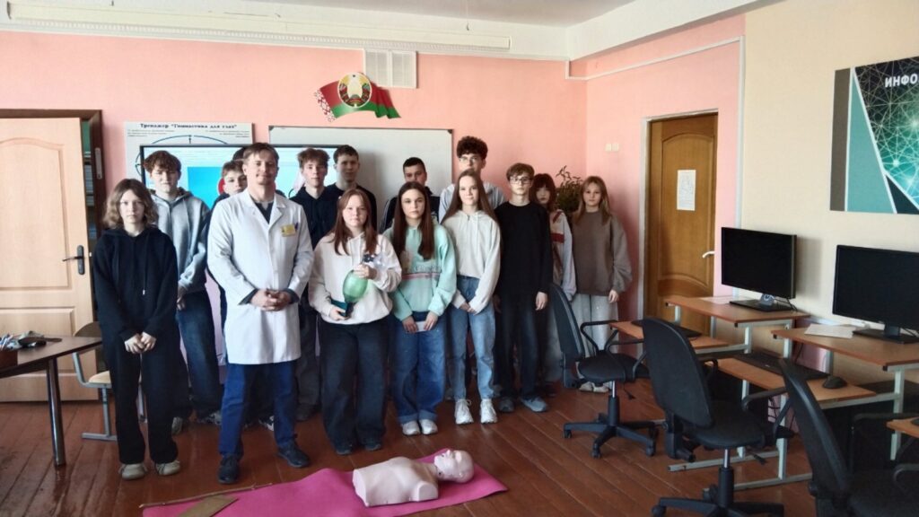 11 апреля 2026 года на базе гимназии № 1 города Волковыска преподаватели Слонимского государственного медицинского колледжа провели обучение навыкам оказания первой помощи для учащихся X-х классов учреждений общего среднего образования.